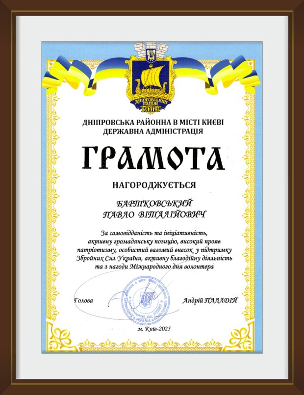 Компанія «Українські хімічні технології ЛТД» на чолі з генеральним директором Павлом Бартковським отримала почесну відзнаку Голови Дніпровського району м. Києва за активну волонтерську діяльність.