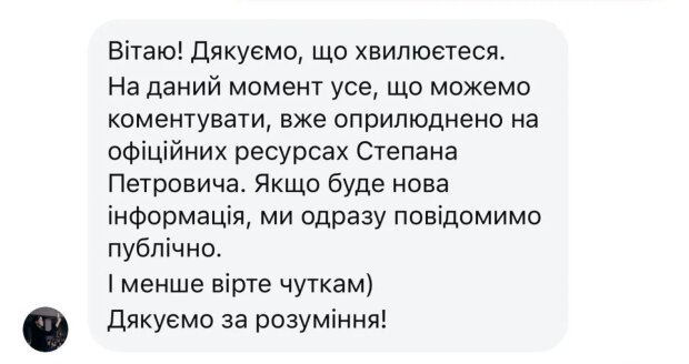 У мережі офіційно звернулися за роз'ясненнями до PR-менеджера співака Ірени. Вона висловила подяку за занепокоєння громадськості, але утрималася від розкриття будь-якої додаткової інформації про його здоров'я.