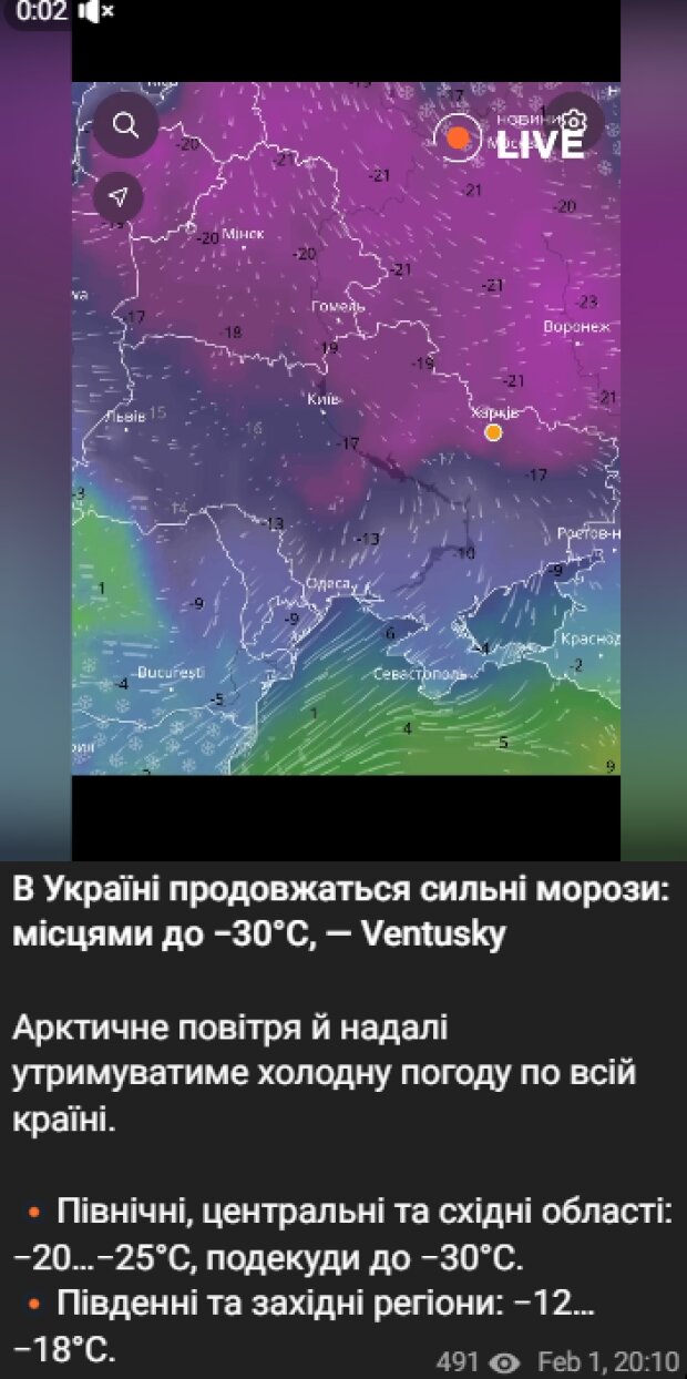 Сильні морози збережуться 3 та 4 лютого. Поступове ослаблення холоду прогнозується приблизно з 5 до 6 лютого. Загалом Україна має пережити близько трьох днів і трьох ночей екстремально низьких температур.