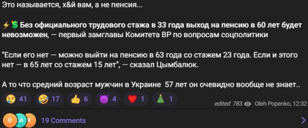 А то что средний возраст мужчин в Украине 57 лет он очевидно вообще не знает», - заявил Олег Попенко в своем канале Telegram.