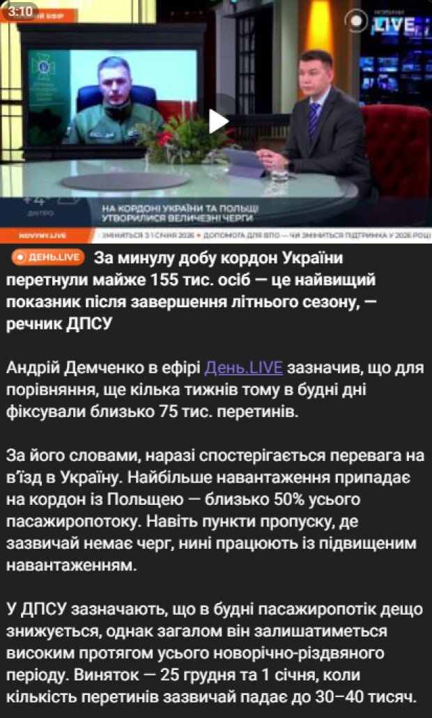 В Украине наблюдается резкий рост трансграничного движения: только 21 декабря государственную границу пересекли почти 155 000 человек. Это самый высокий суточный показатель с конца летнего туристического сезона.