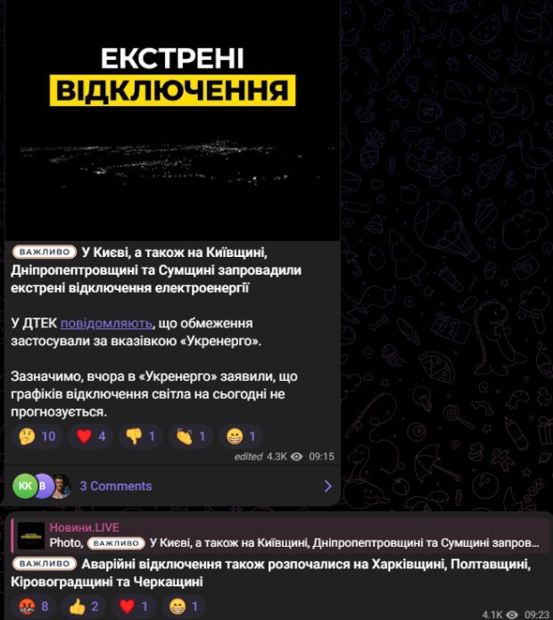 Хвиля відключень також торкнулася окремих районів Житомирської, Харківської та Черкаської областей.